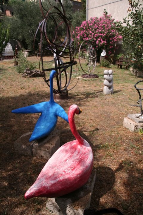 Piero Bonacina, nato a Galbiate (Lecco), è un artista autodidatta. Dopo vari viaggi giovanili in Oriente , si è trasferito nel piccolo borgo di Montegiovi, dove ha trovato la sua dimensione di artista scolpendo il legno e creando opere con vari materiali. Il giardino è una terrazza naturale dal quale si domina un bellissimo panorama sulla Valle dell’Ente, mentre le sculture nascoste nel verde si ergono verso l’alto come totem propiziatori. I materiali usati da Piero sono il metallo, il cemento, la pietra e il legno, facendo sì che l’insieme divenga armonioso con la natura che lo circonda.